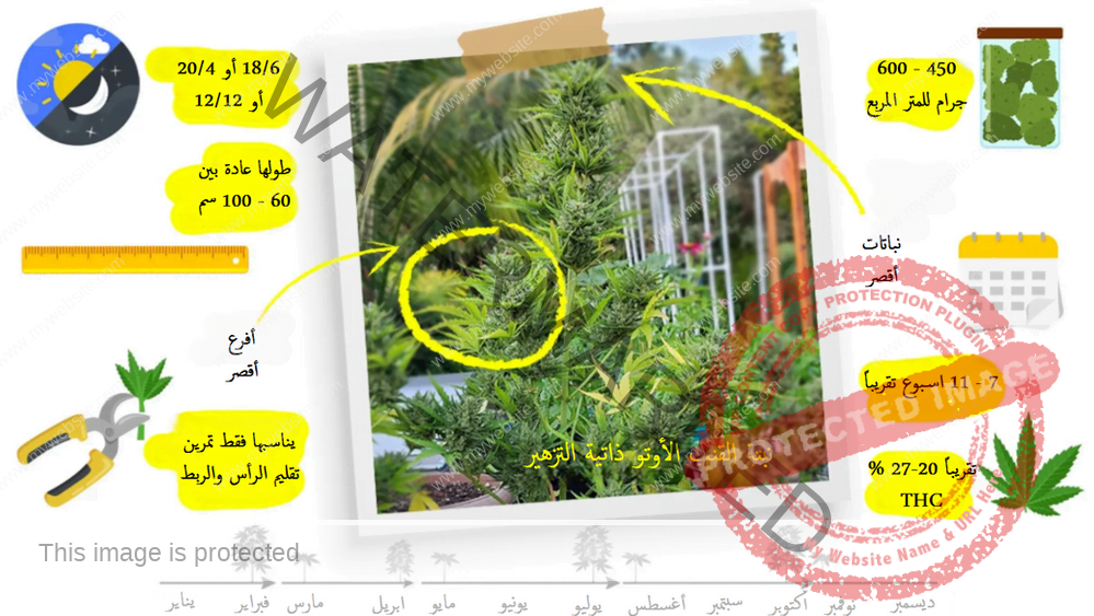 الأوتو ذاتية التزهير: كما ذكرنا سابقاً هي ذاتية التزهير لها وقت معين تزهر فيه لوحدها بغض النظر عن ساعات الضوء اليومية التي تتعرض لها (توقع أن يبدأ تزهيرها من الاسبوع الثالث) و تحصدها خلال 3 اشهر تقريباً من وقت غرس البذور.